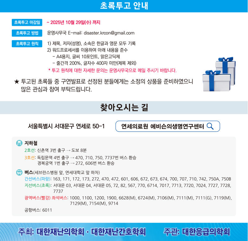 2025 대한재난의학회 대한재난간호학회 공동 학술대회 안내
